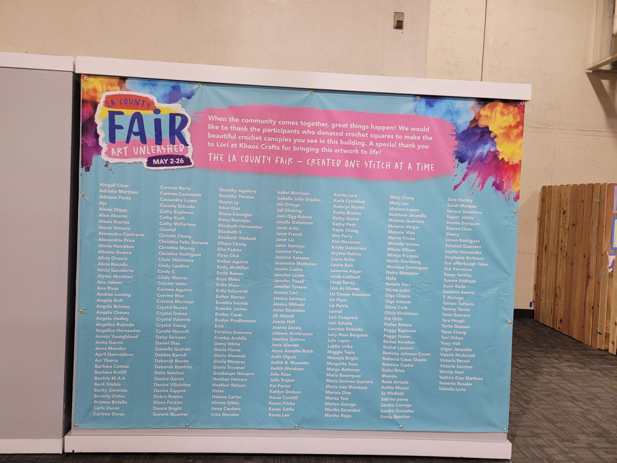 In May 2025, Khaos Crafts proudly partnered with the LA County Fair to bring the Crochet Community Canopy project to life. Over the course of the month, 268 participants came together — meeting on weekdays and weekends — to stitch, share, and create. Together, they completed 1,329 squares that were sewn into 20 vibrant canopy panels, covering over 1,200 square feet with color, texture, and creativity.